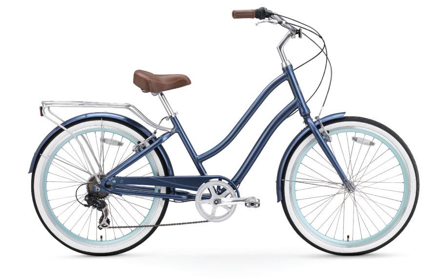 - Seven speed derailleur makes riding hills and longer distances easy