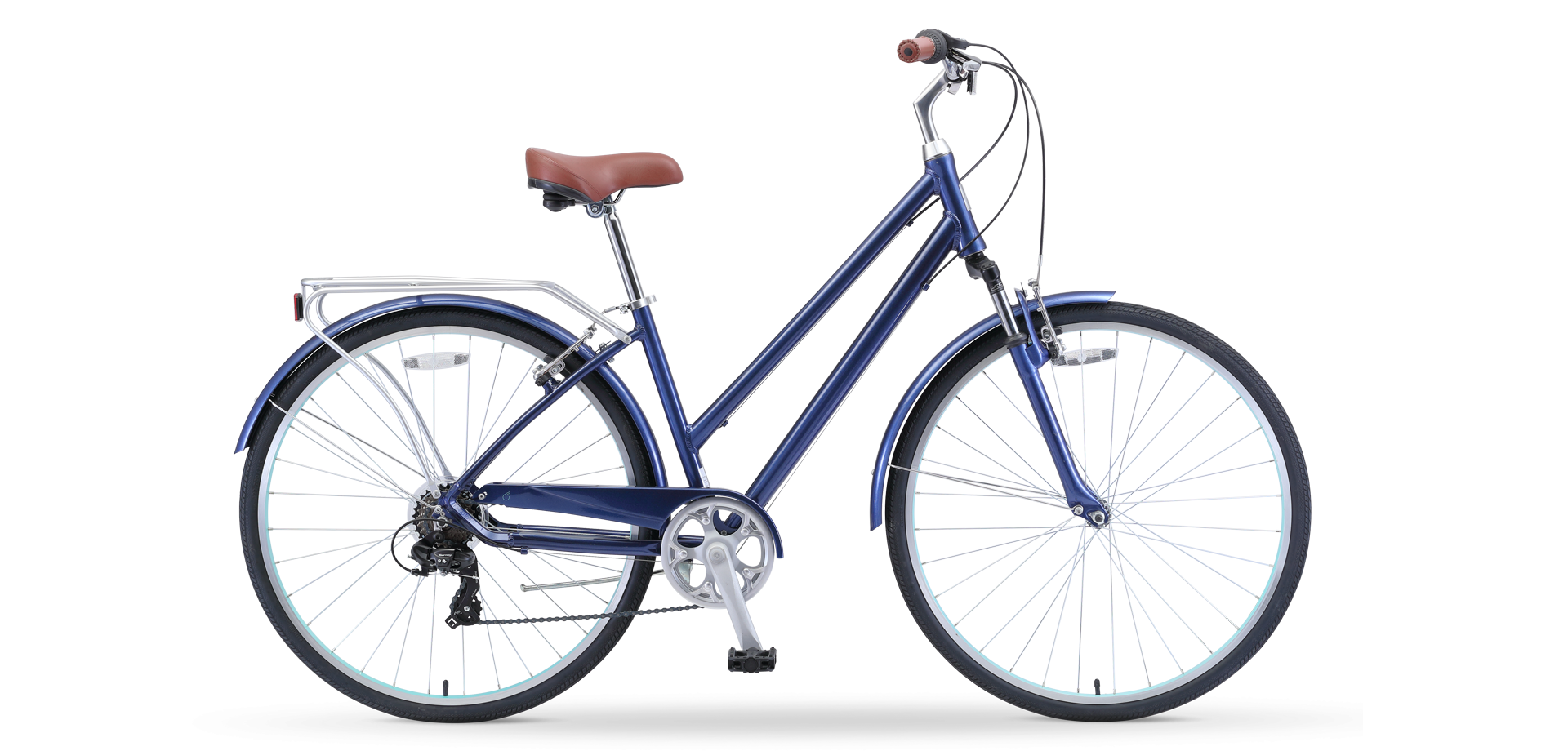 The pedal position is aligned directly below your hips so you can ride quickly and securely without sacrificing comfort.